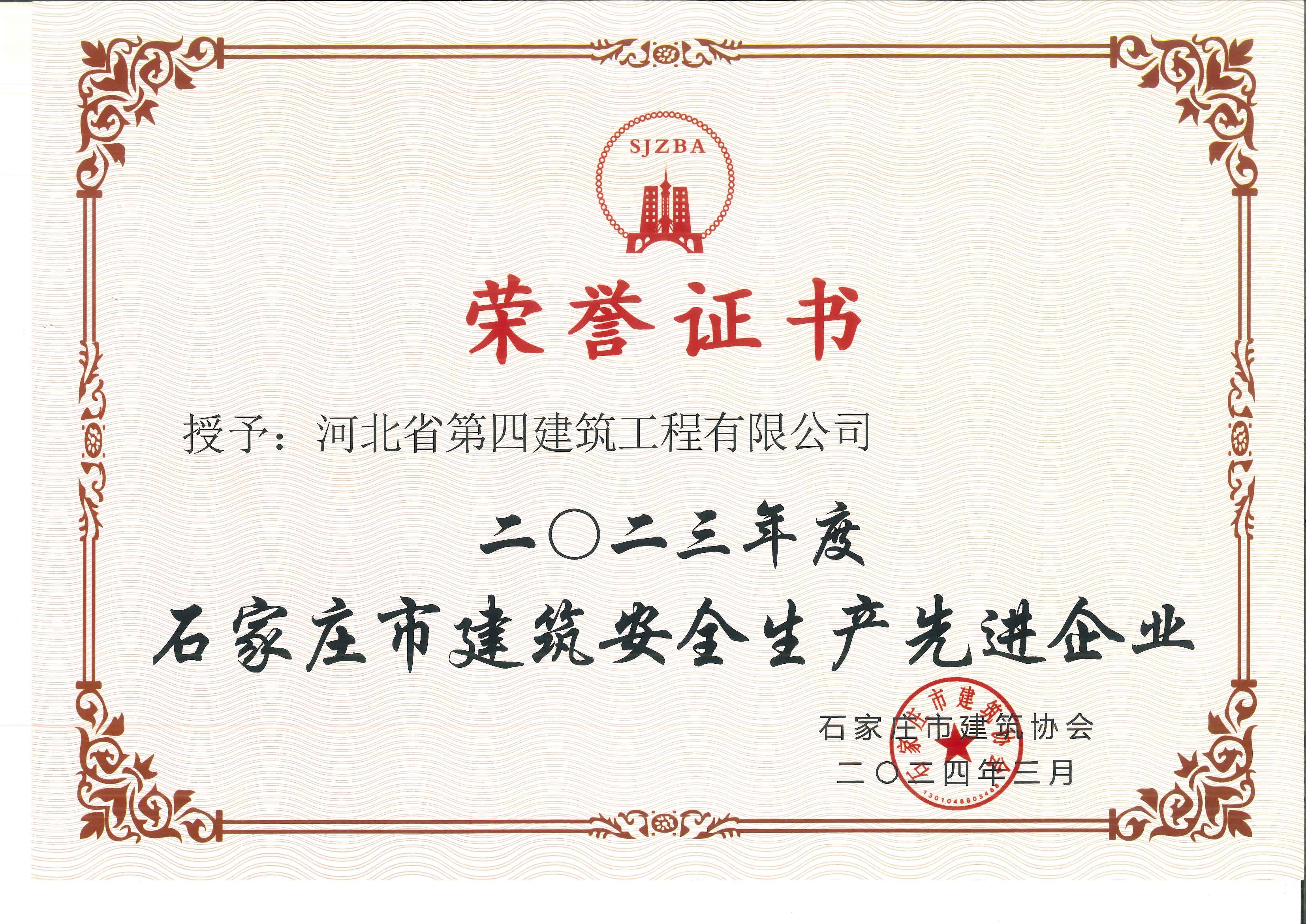 2023年度石家莊市建筑安全生產(chǎn)先進(jìn)企業(yè)