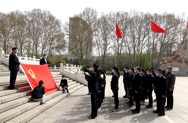 3月31日上午,在五分公司黨總支的組織下,機關(guān)第一、二黨支部在家黨員、團員青年、群眾共三十余人統一著(zhù)裝,徒步來(lái)到華北軍區烈士陵園,開(kāi)展“緬懷英烈 愛(ài)國教育”主題黨日活動(dòng)。為了讓團員青年、群眾都受到教育,此次活動(dòng)范圍擴大到了全體職工。在紀念碑前,全體職工向長(cháng)眠在此的烈士們致默哀、三鞠躬,之后整齊列隊、緩步向烈士們獻上自己親自動(dòng)手制作的小白花,隨后面向紀念碑,右手舉拳,在黨總支書(shū)記賈銀建領(lǐng)誓下,立足崗位鄭重宣誓。