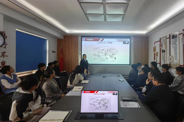 為確保取得實(shí)效,黨群辦公室人員根據職工年齡分層分布的特點(diǎn),與科長(cháng)代表、項目經(jīng)理多次聯(lián)系,提前了解職工想要學(xué)習和掌握的健康知識,作為重點(diǎn)講解內容。經(jīng)過(guò)多方溝通,黨群辦公室人員了解到職工想要學(xué)習心肺復蘇、黃金四分鐘急救、正確操作自動(dòng)體外除顫儀、海姆立克急救,以及慢性心血管疾病前期癥狀識別、心梗腦梗突發(fā)時(shí)如何自救、肩周炎、頸椎炎、腰肌勞損等醫學(xué)知識,便將收集的意見(jiàn)和建議進(jìn)行歸納總結,反饋給授課老師。老師根據意見(jiàn)建議,制作貼合職工需求的課件。講座分為健康知識講解、現場(chǎng)答疑解惑、實(shí)操練習三個(gè)環(huán)節,采用遞進(jìn)式講解的方法,確保職工聽(tīng)得懂、學(xué)得會(huì )、用得上。