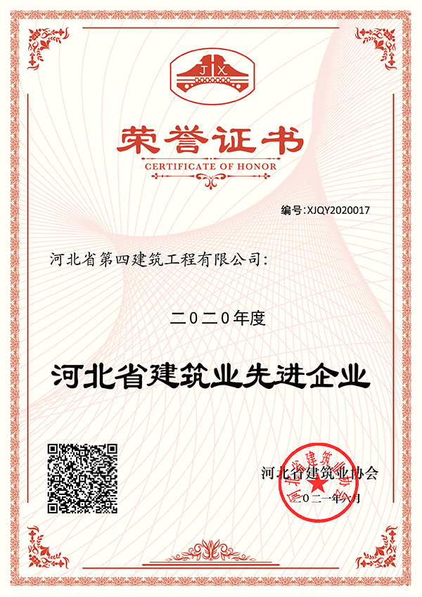 近日,經(jīng)河北省建筑業(yè)協(xié)會(huì )審定并網(wǎng)上公布,公司再次喜獲“2020年度河北省建筑業(yè)先進(jìn)企業(yè)”榮譽(yù)稱(chēng)號,公司已多年蟬聯(lián)此項榮譽(yù)。