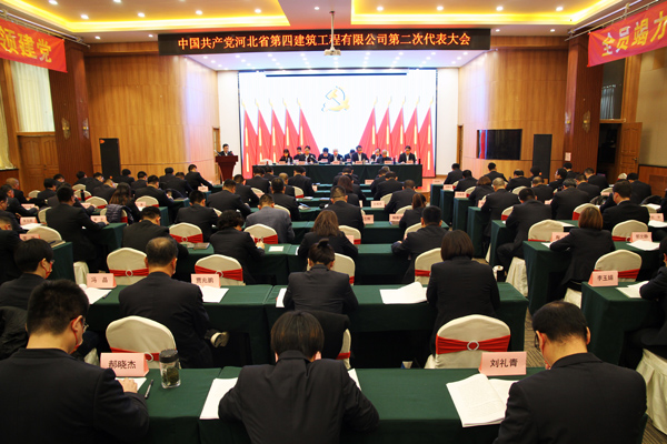 當日,中國共產(chǎn)黨河北省第四建筑工程有限公司第二次代表大會(huì )在石家莊市利淳商務(wù)酒店勝利召開(kāi)。在預備會(huì )之后,大會(huì )在莊嚴的《國歌》聲中隆重開(kāi)幕,96名黨員代表齊聚一堂,凝聚思想共識,共商黨建良策,共謀發(fā)展大計,共繪美好藍圖。集團公司黨委書(shū)記、董事長(cháng)、總經(jīng)理張天平蒞臨會(huì )議并講話(huà),集團公司黨委辦公室主任、組織部部長(cháng)張秋英、集團公司紀委副書(shū)記、紀委辦公室主任、監督檢查室主任張煜出席大會(huì )并全程指導。會(huì )議先后由公司黨委副書(shū)記、總經(jīng)理唐志強,黨委副書(shū)記、紀委書(shū)記、工會(huì )主席李懷生主持。