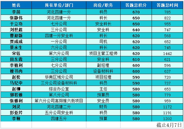 本次活動(dòng)是繼“復工安全培訓第一課”后,公司著(zhù)眼網(wǎng)絡(luò )平臺優(yōu)勢的又一次運用。安全管理部和宣傳部結合職工使用微信較普遍的實(shí)際,聯(lián)合推出了微信答題活動(dòng),以多樣化的方式開(kāi)展培訓教育,提高了“安全培訓教育月”活動(dòng)實(shí)效。(安全管理部)