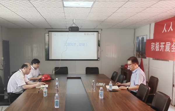 在項目會(huì )議室,董富強首先聽(tīng)取了項目部關(guān)于進(jìn)度、安全、質(zhì)量、文明施工等情況的匯報。他邊聽(tīng)邊記,邊聽(tīng)邊問(wèn),“施工進(jìn)度怎么保證?”“創(chuàng )優(yōu)目標如何實(shí)現?”……他問(wèn)得很細,記得認真,反復強調施工任務(wù)要再細化,務(wù)必卡緊節點(diǎn),創(chuàng )優(yōu)工作要再深入,務(wù)必措施到位。在項目施工現場(chǎng),董富強實(shí)地了解工程進(jìn)展情況并進(jìn)行指導。正值全國“安全生產(chǎn)月”活動(dòng)開(kāi)展之際,董富強要求項目部提高政治站位,壓緊壓實(shí)責任,落細落實(shí)管控措施,確保施工安全。