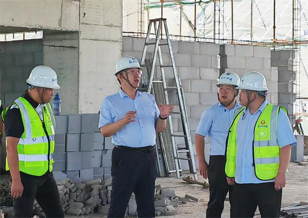 隨后,唐志強深入施工現場(chǎng)實(shí)地檢查??吹紹館和C館鋼結構正在施工,他叮囑項目部切實(shí)做好暑期安全保障工作。在正進(jìn)行二次結構施工的A館,他仔細查看了主體結構梁板柱和二次結構砌筑情況,對施工質(zhì)量表示滿(mǎn)意;詳細詢(xún)問(wèn)了施工人員數量,提醒項目部加強現場(chǎng)施工組織,確保進(jìn)度;針對模板異形較多、周轉次數少、占用量大的問(wèn)題,建議項目部多個(gè)單位工程統籌策劃,合理推進(jìn),科學(xué)組織施工,保證進(jìn)度的同時(shí)降低成本。