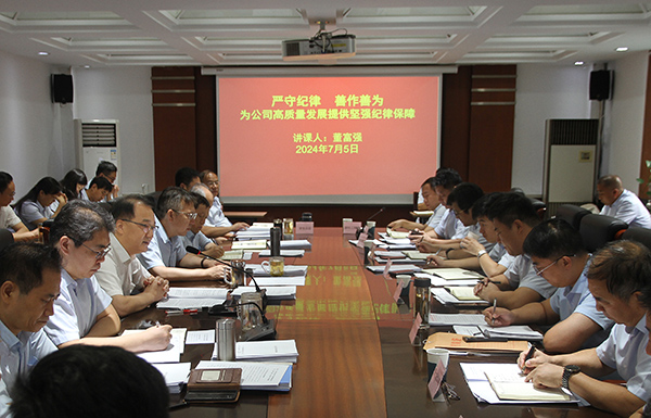 7月5日上午,公司黨委書(shū)記、董事長(cháng)董富強在三樓會(huì )議室講授主題為“嚴守黨紀,善作善為,為公司高質(zhì)量發(fā)展提供堅強紀律保障”的專(zhuān)題黨課,公司領(lǐng)導班子成員、各部室負責人以及各分公司書(shū)記、經(jīng)理加了學(xué)習。