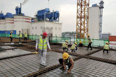 同心協(xié)力完成節點(diǎn)任務(wù)。水泥配料站、水泥粉磨是業(yè)主目前關(guān)注重點(diǎn),要求8月3日前筒倉滑模到14.4米庫底板、水泥粉磨11.5米平面混凝土澆筑完,為安裝輥壓機、減速機等設備創(chuàng )造條件。時(shí)間緊任務(wù)急,持續的降雨反而更加激發(fā)了項目部的斗志,水泥配料站筒倉施工采用滑模工藝,滑模平臺上鋼筋綁扎、預留預埋安裝、混凝土澆筑、庫壁壓面等各道工序相互配合,工種銜接默契。雖然雨水經(jīng)常光顧,但是大家沒(méi)有絲毫懈怠,熱火朝天的干勁兒始終未減。水泥粉磨車(chē)間樓層高、場(chǎng)地狹窄給施工造成困難,項目部采用白天作業(yè)面施工,晚上班組倒運材料等方法,保證施工進(jìn)度。截至7月30日上午,水泥配料站14米庫底板、水泥磨11.5米平面、水泥及礦粉儲存基礎筏板均已澆筑完混凝土,為項目下一步施工創(chuàng )造了積極有利條件。(三分公司)