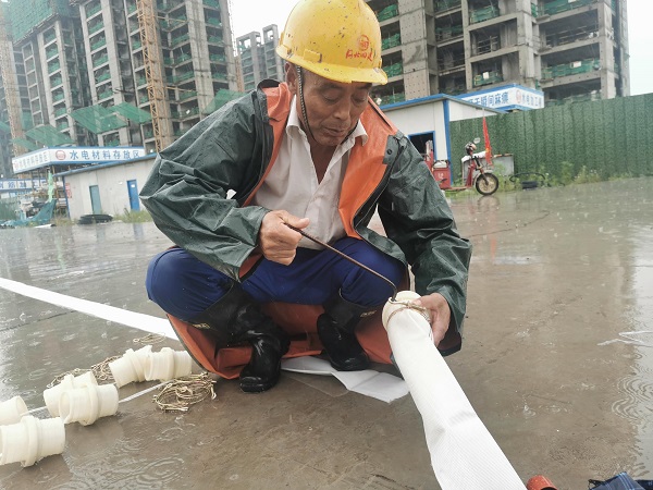 五分公司禹州海盛湖濱豪庭項目同舟共濟應對強降雨