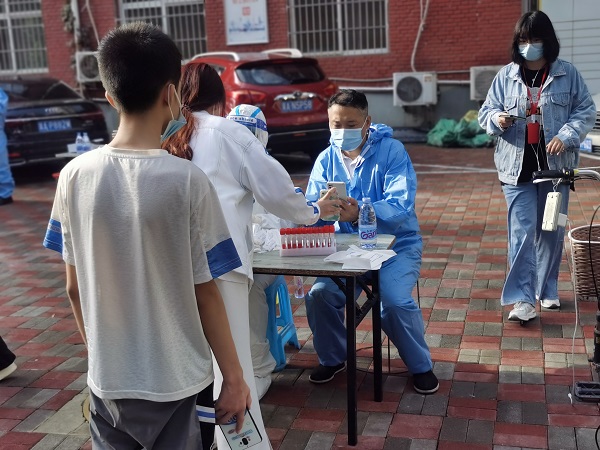 “沒(méi)問(wèn)題,馬上到”,孫志華一邊接電話(huà),一邊穿衣服往外走。一路小跑很快來(lái)到小區核酸檢測點(diǎn),只見(jiàn)大家已經(jīng)有秩序地排成兩隊,拉開(kāi)安全距離,耐心地等待著(zhù)。