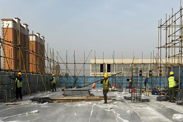 春日天氣漸暖,正是施工項目大干快干的黃金期。項目部搶抓有利時(shí)機,吹響“沖鋒號”,奮力沖刺首季目標任務(wù)。壓實(shí)工作責任,緊盯時(shí)間節點(diǎn),全面梳理節點(diǎn)目標、精準倒排工期,優(yōu)化施工組織方案,增加鋼筋綁扎、模板支設等作業(yè)人員共計20余人,分工協(xié)作,全速推進(jìn)項目進(jìn)度。目前綜合教學(xué)樓已封頂,正在進(jìn)行餐廳及多功能廳主體結構施工。